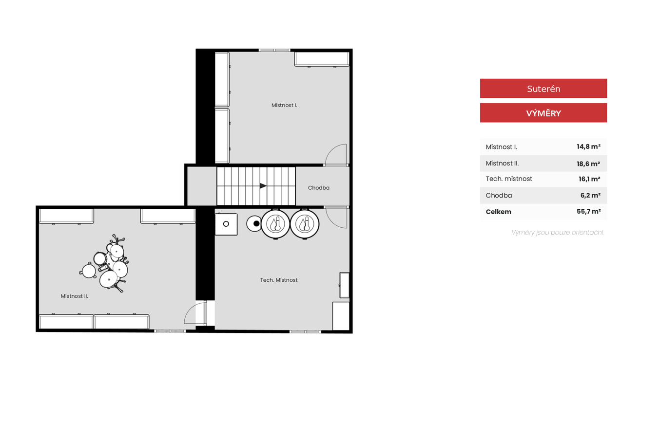 | Sklep plocha | 56 m² | Terasa | Ano |