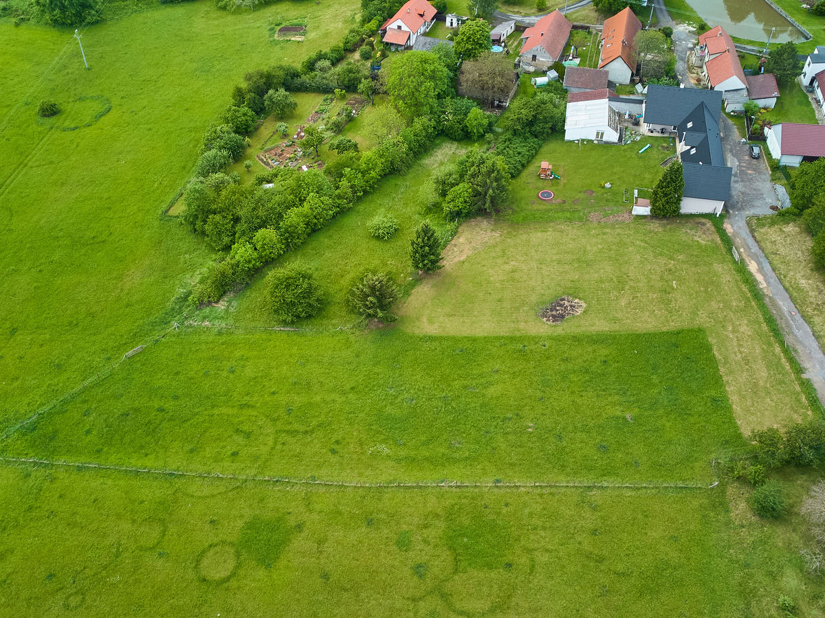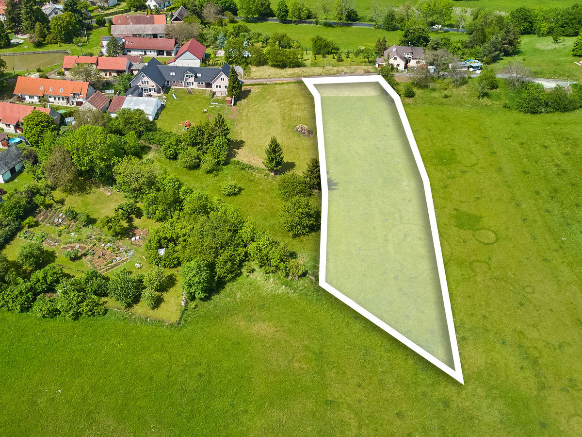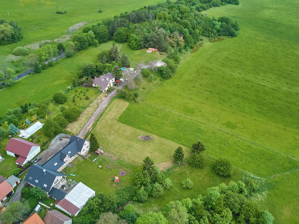 Pozemek má velkorysou výměru 4.032 m2 a je přístupný z obecní komunikace. Inženýrské sítě elektřiny, vodovodu a kanalizace jsou zahrnuty v ceně.